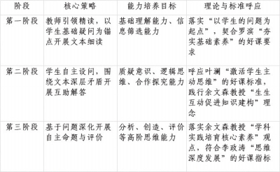 三阶递进式教学法以“学生的问题”为贯穿始终的主线,每一阶段均紧扣核心素养发展目标,其设计逻辑充分呼应余文森教授“学科实践是素养培育关键”的观点,同时契合叶澜、李政涛“思维激活”“互动生成”的好课要求。