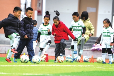 | 毕节市实验学校足球场上,孩子们在老师的指导下学习足球。罗大富 摄 (影像贵州) |