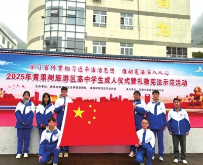 本报讯 (特约通讯员 何仕凯)2025年12月4日,安顺市黄果树旅游区各学校广泛开展宪法宣传教育活动。活动通过成人仪式暨礼敬宪法、校园广播、主题队会、宣传栏等多种形式,推动宪法深入人心落实落地,在全区营造了良好的尊法学法守法用法的氛围。