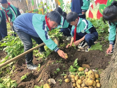 为了让劳动教育真正“落地生根”,学校还结合贵州本地气候特点,于2022年春季启动“四时田园”项目化劳动课程。以“跟着节气去劳动”为主线,将校园变为“四季农场”:春日里,孩子们翻土播种,观察种子破土而出的生命力;夏日中,他们浇水除草,记录作物生长的点滴变化;秋收时,大家一起采摘果实,体会“汗滴禾下土”的艰辛与丰收的喜悦。