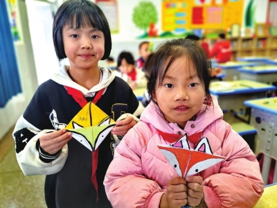 对于低年级的小豆丁们,课程则充满了童趣与巧思。他们将基础的折纸技巧与文具保护相结合。在老师一步步耐心示范下,一张张彩纸变成了可爱的动物笔帽和造型书角签。“我的语文书有小狐狸守护,书页角再也不会被折到了。”一个男孩骄傲地为铅笔戴上刚折好的“兔子帽”。老师弯下腰,帮一个孩子调整书角签的折痕,柔声说:“看,折纸不仅好玩,还能保护我们书本的角落,让学习工具变得更整洁、更有趣。”孩子们举着自己的作品,眼中闪烁着创造的光芒。