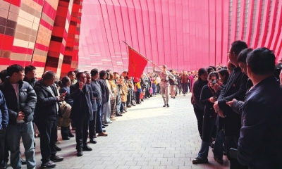 在“红飘带”讲解员详细介绍了场馆“地球的红飘带”的建筑设计理念与项目背景后,大家共同走进全域行浸数字演艺 《红飘带・伟大远征》 展区,开启了一场跨越时空的红色文化之旅。