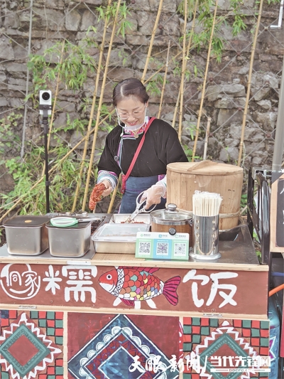 清晨的贵阳街头,一辆改装餐车热气腾腾,31岁的吴英兰正熟练地将蒸好的从江糯米捏成团,裹上酥脆的臊子、喷香的腌菜,一份地道的从江糯米饭很快递到顾客手中。