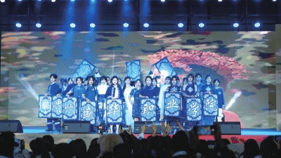| 文艺晚会上学生身着亲手制作的民族服饰自信亮相。 |