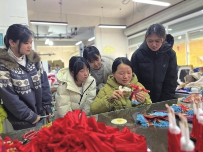 在贵州唐人坊文化创意有限公司的车间里,公司生产部主管隆元碧正为贵州盛华职业学院2023级的学弟学妹们带来一堂生动的实践课——讲授“唐娃娃”的制作工艺。十三年前,从惠水农村走进盛华学院的她,如今已成为唐人坊公司的核心骨干。2022年,她参与设计的“唐娃娃”亮相北京冬奥会,并作为国礼赠予外宾。