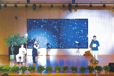 观山湖区第七中学学子带来的诗朗诵《少年逐梦 科技同行》,用铿锵有力的声音抒发了新时代青少年对科技探索的向往;由贵阳市南明小学联合贵州民族大学传媒学院演绎的科学短剧 《星星的约定》,以纯真的视角展现孩子对星空的向往,用简单却真挚的表演传递出对科学的敬畏与热爱。