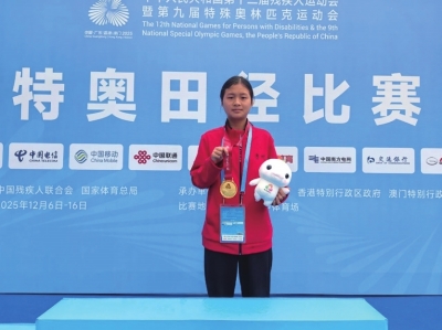 本报讯 (特约通讯员 胡鑫) 日前,在刚刚结束的全国第十二届残疾人运动会暨第九届特殊奥林匹克运动会12-15岁田径400米项目上,毕节市金沙县沙土镇中心小学初中部 (贵州省第一批特殊教育融合发展实验学校) 学生张国群表现卓越,以1分16秒74的优异成绩勇夺特奥田径12-15岁组400米金牌,展现了昂扬的体育风采和坚韧的运动精神。