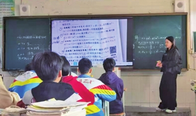 “多点展示”是让每个学生都有上台的机会。她在教室黑板分为四个板块,每组选一道题,派代表上去讲解。讲得好的,全班喊“真棒”;讲错了,其他同学举手补充,没人笑话。