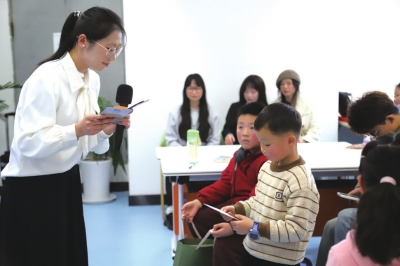 | 讲解员与小读者互动。 |