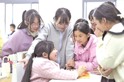 | 申晓燕与同学交流。 |