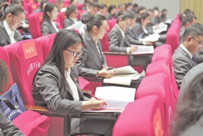 | 代表们认真听取党委工作报告。(姚源清 摄) |