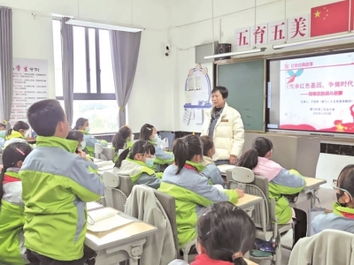 本报讯(特约通讯员 韩浩)近日,黔南州都匀市第二完全小学邀请退休“五老”教师于桂荣走进班级,开展以“传承红色基因,争做时代先锋”为主题的红色故事主题班会活动,为全校师生带来一场深刻的精神洗礼,让红色火种在少年心中生根发芽。