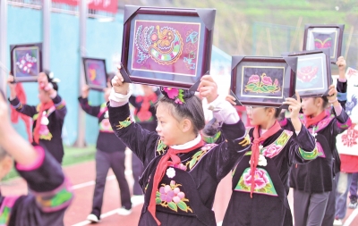 艺术节期间,校园长廊变身“学生艺术馆”,集中展示了涵盖科技制作、苗族刺绣、绘画等在内的学生作品500余件。这些作品既体现了孩子们的艺术创造力,也展现了民族文化的传承与创新。展览吸引了全校师生驻足欣赏,成为校园中一道亮丽的风景线。