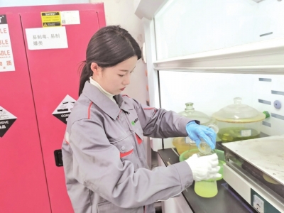 | 贵州工业职业技术学院“贵州磷化(集团)订单班”学子在分析检验室学习。 |