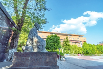 | 贵阳学院中轴线上的阳明文化广场和王阳明坐像。 |