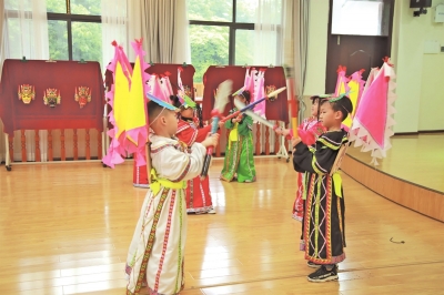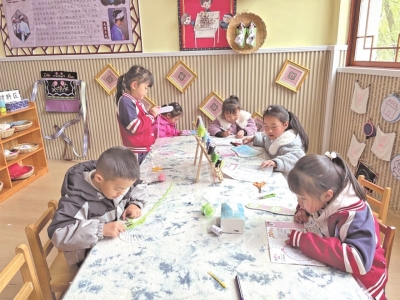 “我们将地戏、蜡染、刺绣等本土文化符号融入环境创设,打造地戏屯堡小舞台、泥工坊、工艺坊等主题活动区。”高雪莲说。
