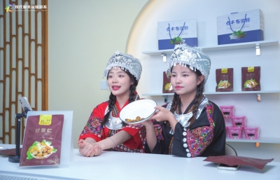| 贵州电子科技职业学院“黔青兴旅”学生团队开展电商直播,传播民族文化与景区特色。 |