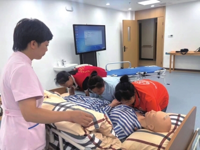 在课程改革层面,学校以护理院的真实服务流程为蓝本,重构 《老年护理技术》 《康复护理实务》 等12门核心课程,将“老年人压疮护理”“失能老人康复训练”等岗位任务转化为教学模块,写进校本教材,让学生在“做中学、学中做”。护理院年均提供1200个实训岗位,保障护理专业学生4个月以上的“沉浸式实训”,学生参与老年人日常照护、健康评估、应急处置等全流程工作,人均累计服务时长超800小时,实现“毕业即上岗”的无缝衔接。