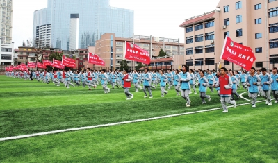 | 安顺市第一高级中学课间跑操。 |