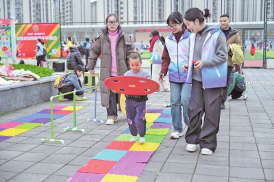 现场像李先生这样的家长不在少数。有的爸爸在“九宫格射门”前尝试保持平衡射门,有的妈妈与孩子蹲在地上合作完成搭建任务。“这个游戏既动脑又要配合,和孩子一起完成很有意义。”一位参与“合力搭建”的母亲表示。