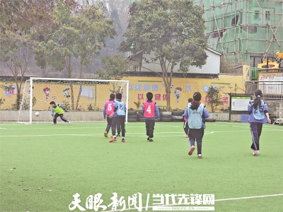 乌蒙山深处,寒风凛冽。贵州省毕节市大方县对江镇元宝同心实验学校的操场上,一群身穿球衣的“足球小将”正迎着冷风奔跑、传球、射门。