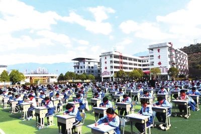 “四点定位记心中,执笔高度一关节,掌口椭圆像眼睛,笔杆倾斜五十度……”近日,走进铜仁市印江自治县第六完全小学,从四年级9班传来悦耳的写字歌。