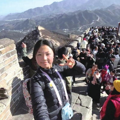 “从京张高铁八达岭长城站下车后,我一路兴奋地朝着登城口走去。当登上八达岭后,我瞬间被雄伟壮阔的长城震撼到了。”陈欣妍说,站在民族脊梁上,我感觉自己很渺小。