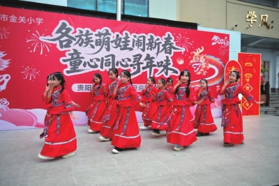 本报讯 (记者 潘国虎)2025年12月31日,贵阳市金关小学将贵州大地上的多彩民俗“搬”进了校园,一场以“各族萌娃闹新春,童心同心寻年味”为主题的元旦迎新活动,让近千名师生在欢声笑语中触摸传统、感受温暖。