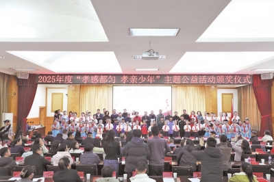 本报讯(记者 杨杰)2025年12月28日,2025“孝感都匀”孝亲少年主题公益活动落下帷幕。10名孝亲少年手捧证书,在全场热烈的掌声中接受颁奖,他们的感人事迹也在匀城大地上广泛传扬。