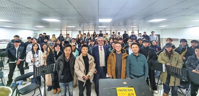 | 朱塞佩·布鲁诺与管乐团全体师生合影。 |
