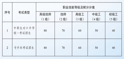 职业技能等级赋分表