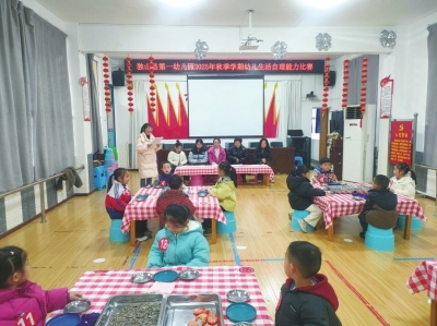 本报讯(特约通讯员 吴昌慧) 近日,黔南州独山县第一幼儿园、下司幼儿园分别开展幼儿生活技能趣味剥物比赛与“关爱‘小树苗’,提升自理能力”专项竞赛活动。两园立足幼儿年龄特点分层设项,让萌娃们在趣味比拼中收获成长,在实践体验中筑牢全面发展根基。