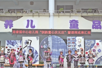 本报讯(记者 廖尚海 特约通讯员 徐暮霞)近日,从江县洛香镇中心幼儿园内歌声悠扬、盛装如画,“侗韵童心庆元旦”课程成果展演活动热烈举行。全体师幼与家长齐聚一堂,在浓厚的侗乡风情中共同迎接2026年的到来。