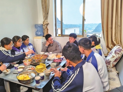 今年30岁的陈祖鹏,是黔西南州兴仁市凤凰中学的一名语文老师,也是一名左手截肢的残疾人。从2019年开始,他把自己所带两个班级的学生按自由组合方式,每6—7人编为一个就餐小组,每周末轮流到他的宿舍吃火锅。在饭桌上,师生们彼此放下了课堂上的严肃,敞开心扉进行交流,让一顿顿火锅变成了“亲情餐”“减压餐”“感恩餐”“精神餐”……他因此成为学生心中的“亲情哥”。