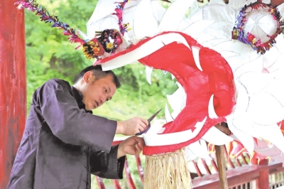 | 非遗代表性传承人正在彩画龙头。张奎 摄 |