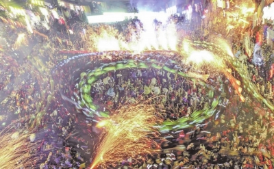 | 观众们的目光紧紧跟随着龙灯,喝彩声、欢呼声此起彼伏。张奎 摄 |