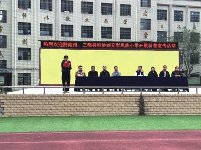 本报讯 (特约通讯员 王振华) 近日,前进村村支两委与驻村工作队主动对接黔南州科协、三都水族自治县科协,在普安镇交梨小学共同举办“科普进校园”活动。黔南州科协副主席陈梅、三都自治县科协主席潘承亚出席本次活动。