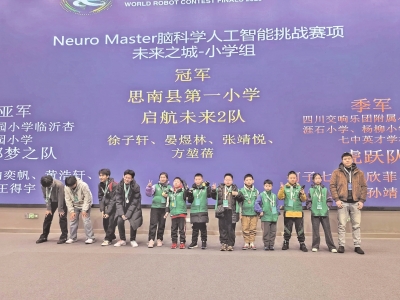 1月6日,2025世界机器人大赛总决赛在江苏无锡开幕。来自21个国家的2万余名选手经过全球500余场选拔,会师对决。在这场被誉为“机器人界奥林匹克”的赛事中,来自我省铜仁市思南一小的徐子轩、方堃蓓、晏煜林、张靖悦四位同学,在“脑科学—未来之城”项目中力压群雄,斩获小学组冠军。