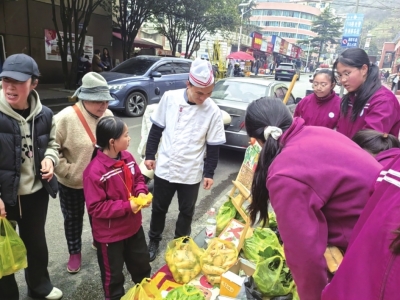 下午1时,义卖活动正式启动。同学们迅速分工协作:有的负责招揽顾客,用稚嫩的声音介绍产品;有的专注称重计价,算账时一丝不苟;有的忙着打包分装,动作麻利规范。“这些孩子特别认真,蔬菜新鲜又干净,还能支持他们的劳动实践,特别有意义。”市民张阿姨一次性买了三把生菜,为孩子们的表现点赞。热闹的摊位前,暖意融融的不仅是交易场景,更是劳动价值与善意的双向传递。