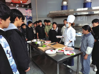 在烹饪专业老师的课堂上,烹饪老师张德身着整洁的厨师服,不仅通过实物展示和现场操作演示,将烹饪技能实操知识讲解得深入浅出,还巧妙地引导学生参与其中,让学生们在亲身体验中掌握技能。听课教师们一边认真记录,一边不时点头称赞,对这种理论与实践相结合的教学方法给予了高度评价。