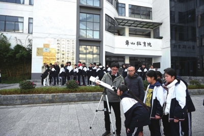 本报讯 (记者 潘国虎 特约通讯员 刘贤)1月16日,贵州兴义笔山中学举办“国家科普示范基地 (FAST) 地理跨学科主题学习研究与实践”“从Karst到FAST——追寻天眼足迹”系列天文科普活动。活动以“科普启智、机制创新、资源共享、赋能成长”为核心理念,通过老师研讨、学生讲座、天文实操等多元形式,为全校师生呈现了一场兼具知识性与趣味性的科学盛宴,切实推动学校科技教育向内涵式、高质量方向发展。