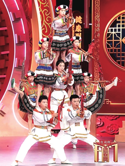 本报讯 (记者 王军 周恩宇)1月18日,中央电视台综艺频道 (CCTV-3)“2026年开门迎春晚”栏目第二期,播出了纳雍县国家级非物质文化遗产——苗族芦笙舞“滚山珠”。节目中,纳雍县滚山珠飞龙团队的表演者们,身着苗族传统服饰手持芦笙腾跃翻转,边吹边跳。在悠扬笙曲中,将“地龙滚荆”“双飞燕”等高难度技巧与民族韵律完美融合,以粗犷豪放的风格和深厚的文化内涵,为全国观众带来了一场震撼人心的非遗盛宴。
