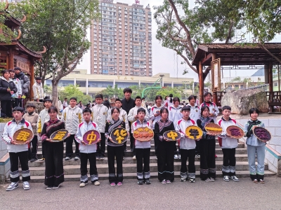 学校积极推动非遗“请进来”、让学生“走出去”,邀请非遗代表性传承人进校授课,组织学生走进文化陈列馆、非遗工坊、非遗展厅体验学习。同时,设计“罗甸大小井布依村寨风情+自然风光+麻怀隧道奋斗足迹”等研学路线,让学生在领略民族风情的同时,学习“当代女愚公”邓迎香开凿隧道的奋斗精神,引导他们从“民族团结的受益者”转化为“宣传者、实践者”。