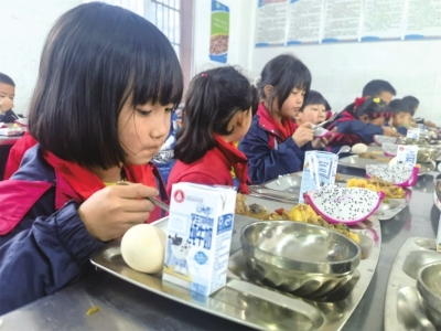 具体到提升膳食营养水平上,贵州一方面全面普及应用带量食谱,另一方面进一步明确食材种类、菜品数量等供餐基本要求。目前,贵州制定了240套带量食谱,每天食材种类不少于12种,每周提供3次学生奶,指导学校“吃得营养、科学、均衡”。