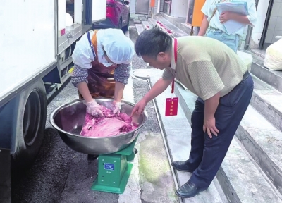 2025年9月22日,盘州市第七中学值日校长检查每天送来的食材。本报记者 侯帮虎 特约通讯员 王绍斌 赵长福 摄