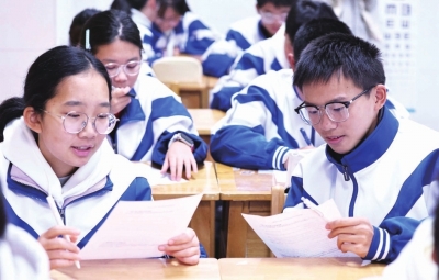 | 2025年10月27日,贵阳六中白云校区课堂上学生积极讨论所学内容。本报记者 邱凌峰 摄 |