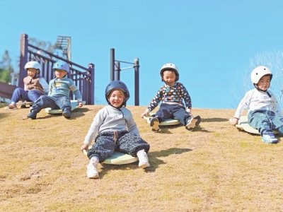 | 孩子们在户外体验滑草游戏。铜仁市教育局供图。 |