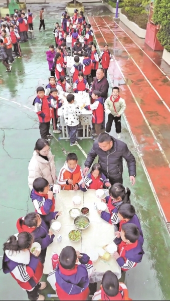 本报讯(特约通讯员 罗振)1月23日贵州省中小学寒假首日,中午时分,兴义市南盘江镇歪染学校内,师生将课桌拼作操场长桌。操场一角,炉火正旺,满锅漂汤肉热气氤氲,为这所山村小学的冬日添上一抹别样温暖。