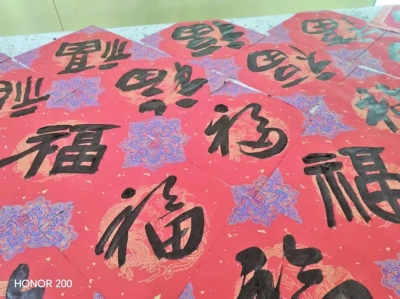 活动现场,两位老师凝神聚气、笔走龙蛇,笔墨流转间,将对新春的美好憧憬、对师生的真挚关怀凝结于笔端。一张张红火的宣纸之上,苍劲有力的“福”字寓意吉祥如意,工整大气的“顺”字承载顺遂安康,每一笔、每一画都满含温度,让浓浓的年味儿在笔墨书香中悄然流淌。