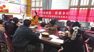 在下江镇恰里村的村委会活动室和室外临时搭建的直播间里,学生们将所学的电商知识转化为生动朴实的带货语言。贵州开放大学的教师与本地“三农”主播围绕“新媒体平台小店运营”“农产品直播话术设计”“手机拍摄与剪辑技巧”“乡村场景直播策划”等内容,开展了为期一天的密集培训。学生们迅速吸收转化,从初次面对镜头的生涩,成长为从容介绍产品特点、讲述乡村故事的“新农主播”。